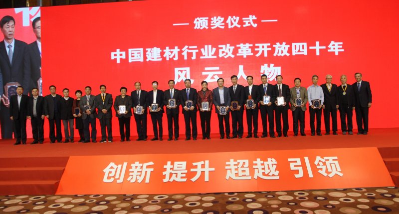 在過去40年改革與發展歷程中,中國建材行業取得了豐碩的成果,涌現出一批優秀的建材企業和領導者,為嘉獎他們為行業改革創新與持續發展作出的突出貢獻,原國家建材局局長林漢雄、王燕謀、張人為,原國家建材副局長、中國建材聯合會會長喬龍德,原國家建材局副局長雷前治、蔣明麟被評為“中國建材行業改革開放四十年領袖人物”;中國建材集團有限公司董事長、黨委書記宋志平,安徽海螺集團有限責任公司原董事長郭文叁被評為“中國建材行業改革開放四十年影響力人物”。中國建材集團有限公司副董事長李新華,中國建材集團有限公司總工程師、中國建筑材料科學研究總院院長姚燕,中材節能股份有限公司董事長張奇等被評為“中國建材行業改革開放四十年風云人物”。