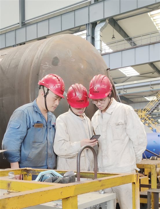 南通萬達鍋爐車間員工通過手機收看視頻直播
