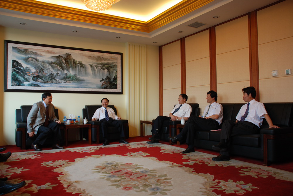 Yu Shiliang, the secretary of the Party Committee of China National Materials Co., Ltd. (Sinoma) meets respectively with Zhao Kun, the vice president of Baosteel Group Corporation, who has also holding the president of Guangdong Steel Co., and the general director of Zhanjiang Steel Engineering Department.